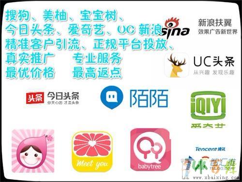 新浪扶翼,微博粉丝通,腾讯智汇推,腾讯广点通,百度搜索和信息流,搜狗搜索,神马搜索,凤凰新闻,东方头条,360搜索,360信息流,uc浏览器,爱奇艺视频,陌陌LBS,陌陌广告联盟,美柚app,VIVO广告,oppo广告,爱奇艺,惠头条等各大网络渠道! 公司对各大平台都有一套独特的运营方式,素材亦是热门、点击量高的素材,运营调控经验丰富,受到广大合作商客户的信赖与好评,只有你想不到的推广平台,没有我们做不了的推广方式原文www.xbaixing.com。